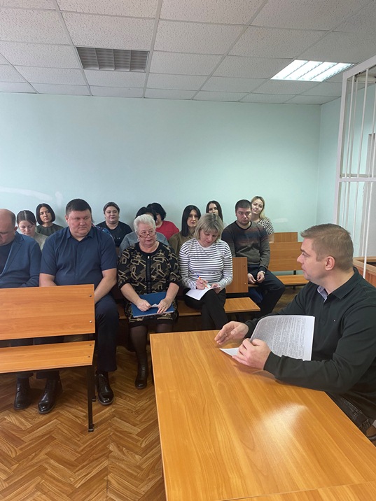 С докладом на тему «Оформление уголовных дел после их рассмотрения» выступила помощник судьи Князева К.О. Кристина Олеговна довела до присутствующих порядок совершения действий по формированию уголовного дела после рассмотрения, напомнила о сроках изготовления протокола судебного заседания и сдачи дела в отдел делопроизводства. Также с докладом «Разъяснения по вопросам, касающимся уплаты государственной пошлины при рассмотрении дел в судах, изложенные в Обзоре судебной практики Верховного Суда Российской Федерации № 2, 3 (2024)» выступил помощник судьи Шубин В.А. Владимир Александрович обратил внимание сотрудников аппарата на изменения, касающиеся уплаты госпошлины при подаче в суд исковых заявлений и жалоб. Начальник общего отдела Журавлева Т.В. ознакомила работников суда со служебными письмами, поступившими из Управления Судебного департамента в Тульской области. Также сотрудники обсудили другие производственные вопросы.