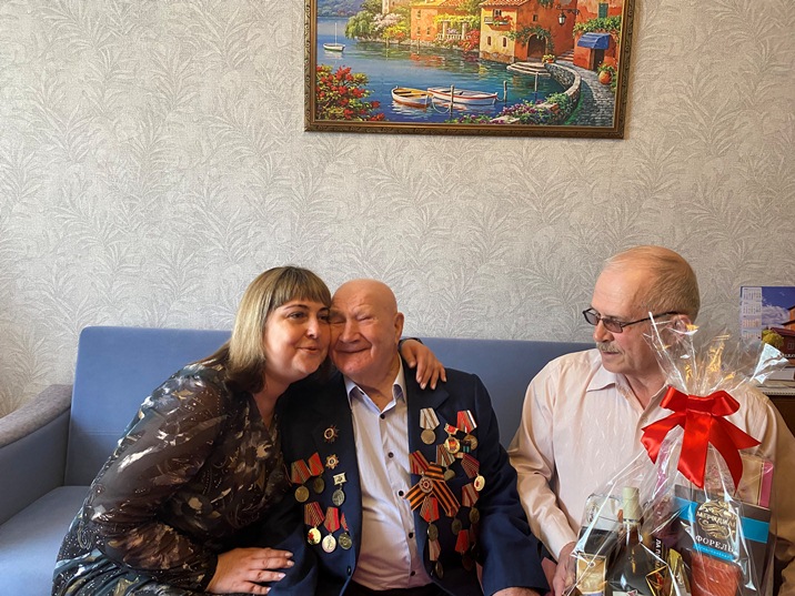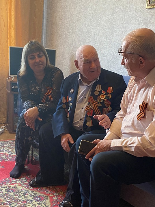 Сегодня заместитель председателя Ефремовского межрайонного суда Тульской области Щербакова Л.А., помощник председателя суда Михайловская Е.Е. и администратор суда Бурдин М.П. приехали в гости к Шуваеву Сергею Владимировичу. Они сердечно поздравили ветерана с праздником, выразили благодарность за его подвиги в Великой Отечественной войне. От имени всего коллектива вручили цветы и продуктовую корзину. Сергей Владимирович – глубоко пожилой человек, ему исполнилось 100 лет, был взволнован и рад, что его помнят и чтут. Он с удовольствием, оптимизмом и улыбкой делился своим воспоминанием о своем фронтовом пути, послевоенной жизни и работе. Рассказал, что ему не было и восемнадцати, когда он получил повестку в военкомат, а как только наступило совершеннолетие, принял присягу и отправился на фронт. До отправки на фронт он прошел подготовку на специальных курсах в Москве, получив специальность «артиллерист – дальномерщик» и звание – ефрейтор, заместитель командира орудия. Потом сразу в пекло: попал в Сталинград, где в это время шли ожесточенные бои. Служил в зенитно-артиллерийском полку орудий малого калибра. Была в его фронтовой судьбе Украина, куда артиллеристы с боями дошли к концу 1943-го. Участвовал в освобождении Крыма, в битве за Севастополь и Сапун-гору. Потом фронтовой путь лежал через Белоруссию, Восточную Пруссию, Литву, Латвию, Эстонию – в Кенигсберг, в штурме которого участвовал ефрейтор Шуваев. Всего за два с половиной года расчет, которым он командовал, сбил пятнадцать самолетов, уничтожил множество вражеских танков и огневых точек противника. Победу встретил в Кенигсберге, дослуживал в Эстонии, демобилизовался в 1947 году. Его боевые заслуги отмечены медалями «За взятие Кенигсберга», «За отвагу», «Орденом Отечественной войны» II степени. Прощаясь, гости от всего сердца пожелали такому светлому человеку крепкого здоровья и такого же позитива, который он излучает. (В сообщении использована информация, опубликованная в газете «Заря.Ефремов» от 27.02.2025 № 8)