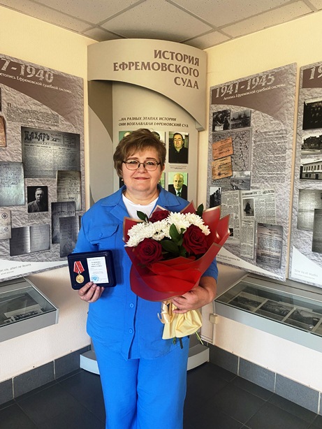 | Судья Ефремовского межрайонного суда в почетной отставке Мамонова М.Н. награждена медалью «За безупречную службу» | версия для печати |