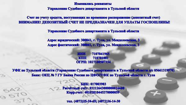 | ❗ Изменились реквизиты Управления Судебного департамента в Тульской области | версия для печати |